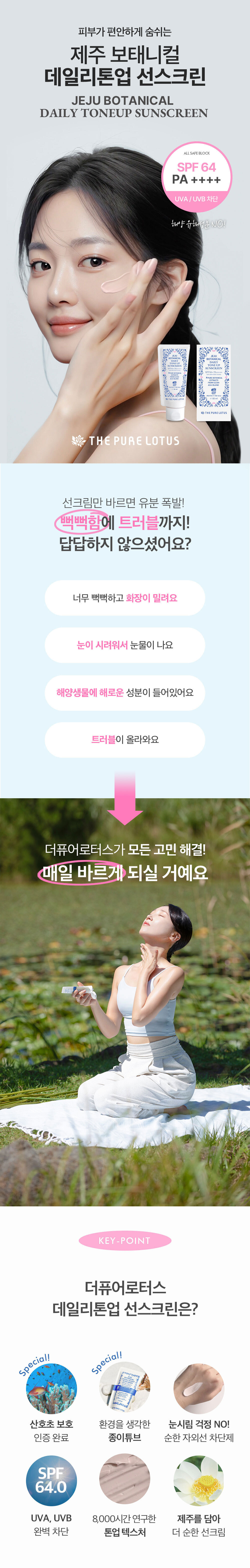 더퓨어로터스 제주보태니컬 데일리톤업 선스크린 30,000원 / 배송비 : 3,000원 주문시결제(선결제)